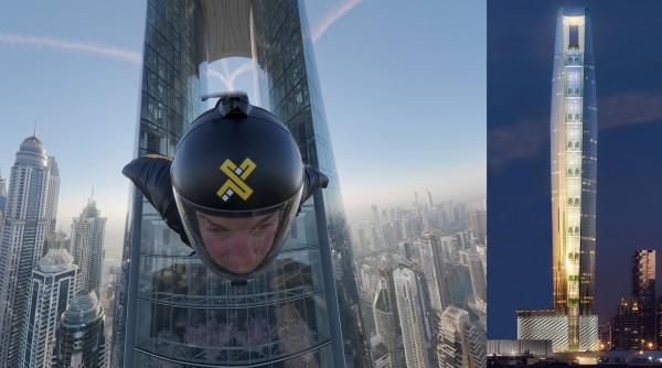 Cinci parașutiști cu wingsuit au trecut în zbor prin cel mai înalt hotel din lume, Ciel Dubai Marina