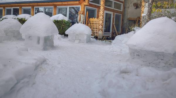 Sculptorul Radu Fachin din Deva a făcut un cartier de căsuțe tradiționale din zăpadă